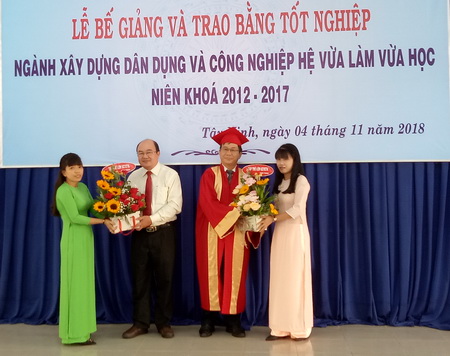 Tham dự buổi lễ có sự hiện diện của PGS.TS Nguyễn Bá Hoàng, Phó hiệu trưởng Trường ĐH Giao thông vận tải TP. HCM, PGS.TS Nguyễn Thành Đạt, Trưởng phòng Đào tạo VLVH, ông Trần Tam Hổ - Giám đốc TTGDTX tỉnh Tây Ninh, cùng quý thầy cô của hai trường và 57 tân kỹ sư ngành xây dựng dân dụng và công nghiệp niên khóa 2012 – 2017.