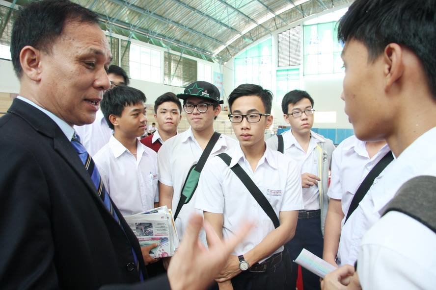 PGS.TS Nguyễn Văn Thư, Hiệu trưởng Trường, đang tư vấn cho thí sinh về phương thức xét tuyển ĐH năm 2016 - Ảnh: Trần Huỳnh