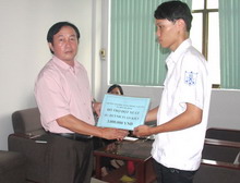 | Cô Uông Thị Lành. Phó Chủ tịch Công đoàn trường trao giấy khen cho sinh viên |