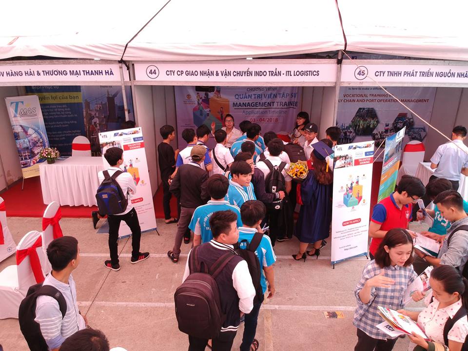 “Ngày hội việc làm & kết nối doanh nghiệp” được tổ chức theo hình thức gian hàng tư vấn - tuyển dụng tại chỗ của doanh nghiệp (DN) tham gia. Sinh viên (SV) trực tiếp gặp gỡ nhà tuyển dụng, tìm hiểu thông tin việc làm và nộp hồ sơ ứng tuyển nhiều việc làm hấp dẫn như: kỹ sư điện - điện tử viễn thông, máy tàu thủy, điều khiển tàu biển, kỹ sư cơ khí, kỹ sư tự động hóa, chuyên viên phân tích dữ liệu, chuyên viên tư vấn tài chính, tiếp viên hàng không, xuất nhập khẩu, môi trường, marketing, logistics, kinh doanh...