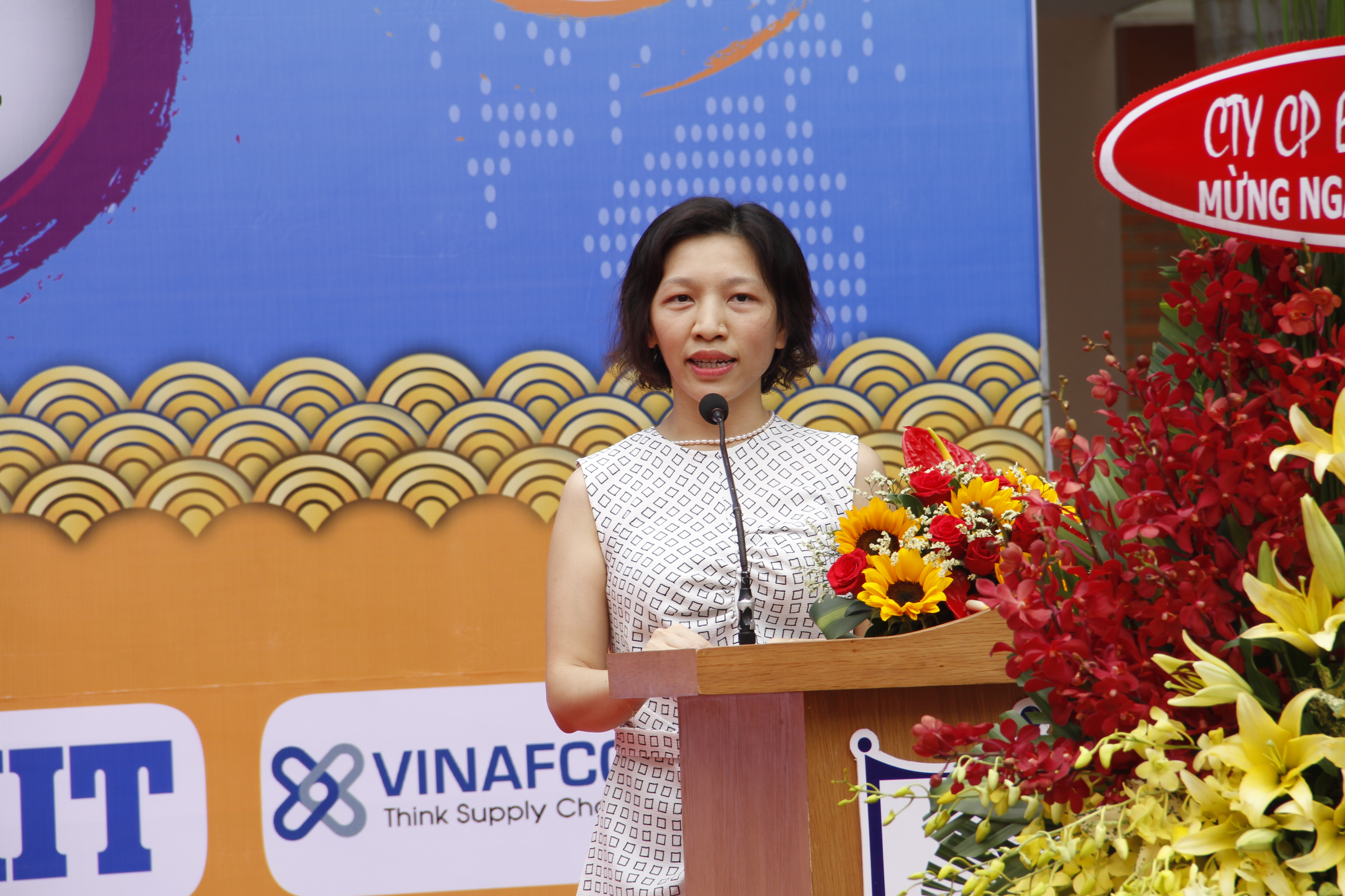 Bà Hà Thị Thủy Linh, Trưởng phòng thuyền viên Công ty TNHH DV Hàng Hải & TM Thanh Hà, đơn vị đồng tài trợ phát biểu tại buổi lễ