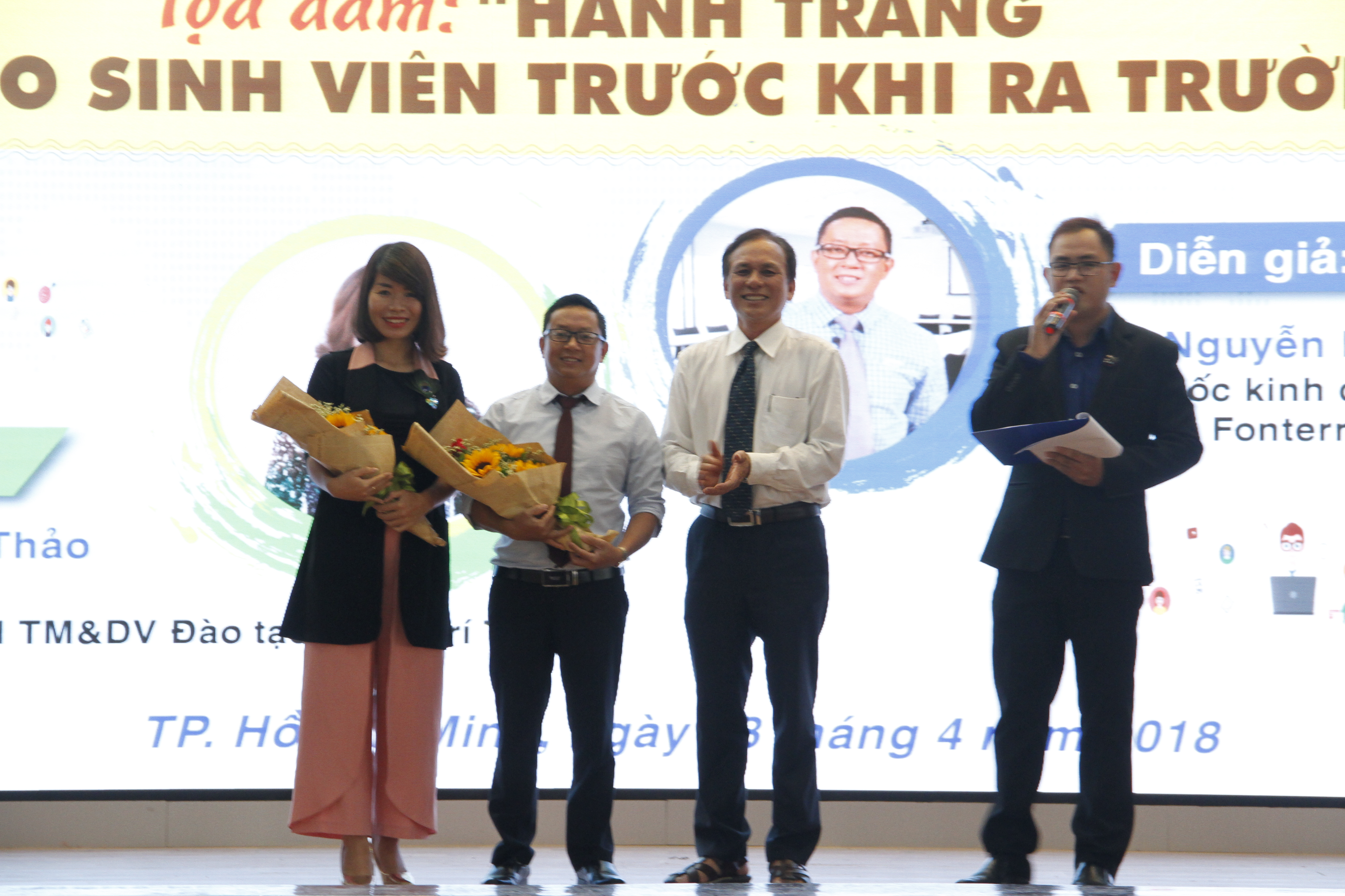 Đại diện Nhà trường tặng hoa cho diễn giả