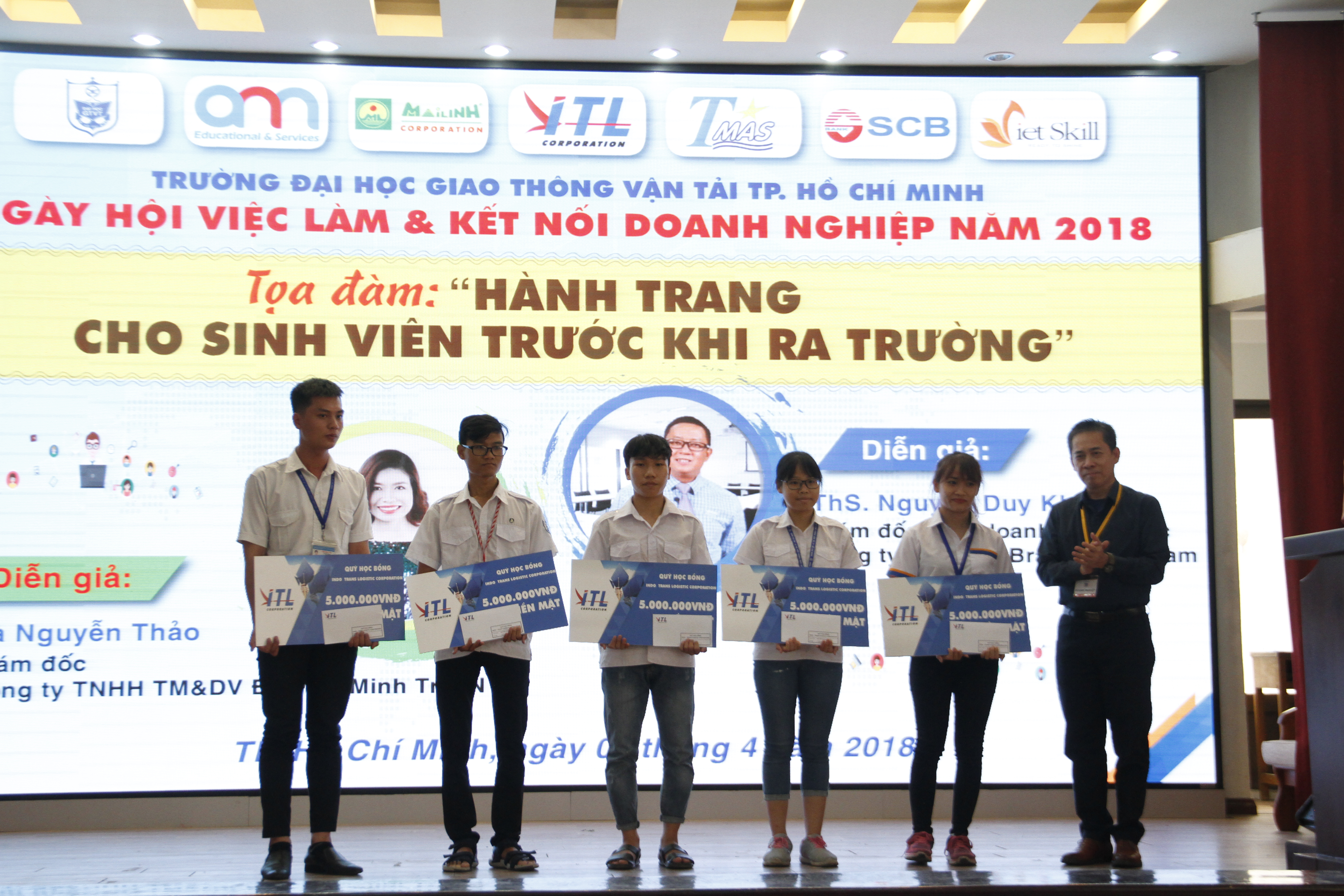 Tại ngày hội còn diễn ra buổi giao lưu “Hành trang cho sinh viên trước khi ra trường” (từ 14h00 – 16h00) với khách mời là các doanh nhân, các nhà quản lý tuyển dụng nhiều năm kinh nghiệm sẽ chia sẻ những kiến thức, kỹ năng căn bản dành cho sinh viên khi chuẩn bị bước vào môi trường làm việc chuyên nghiệp. Các bạn tham gia cũng rất hào hứng đặt nhiều câu hỏi và tình huống cho diễn giả. Trong khuôn khổ chương trình buổi tọa đàm, Công ty ITL Logistics đã dành 05 suất học bổng thiết thực cho sinh viên nhà trường với giá trị là 5 triệu đồng/suất.