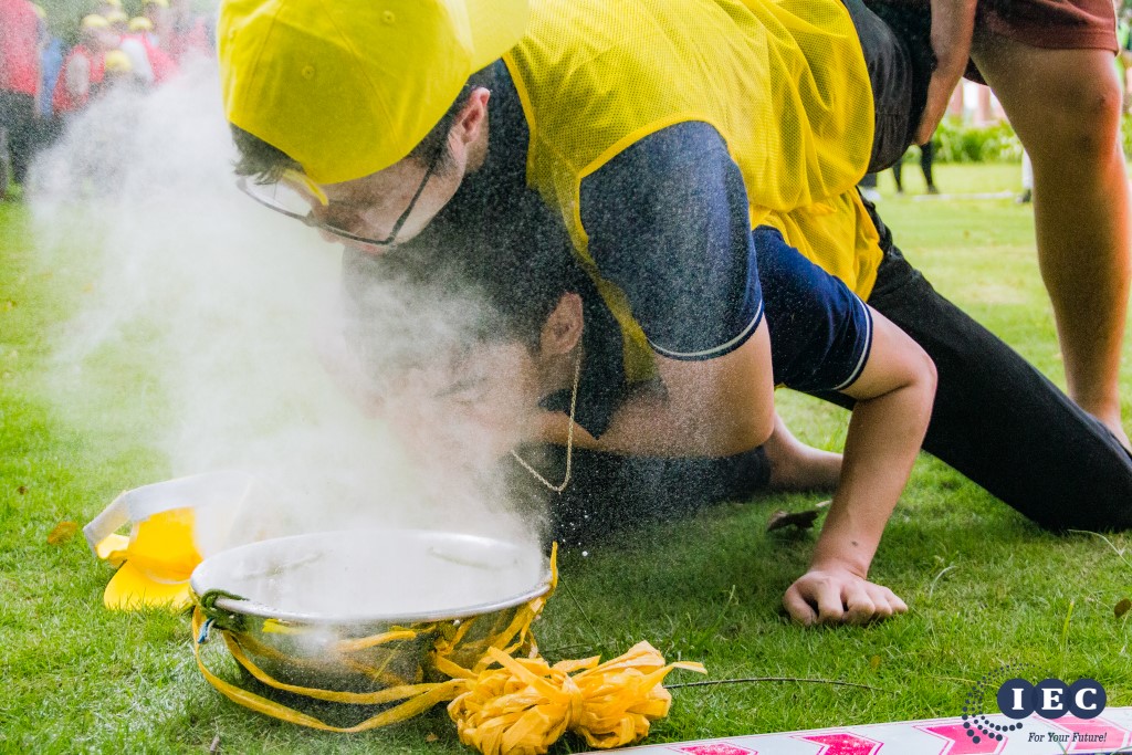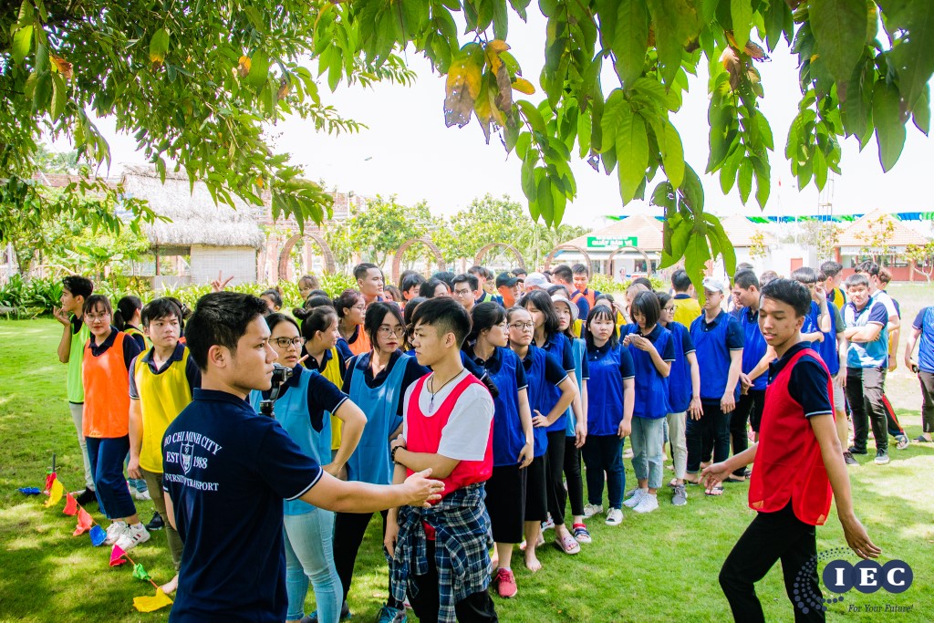 Các sinh viên tập trung chơi team building sau giờ ăn trưa