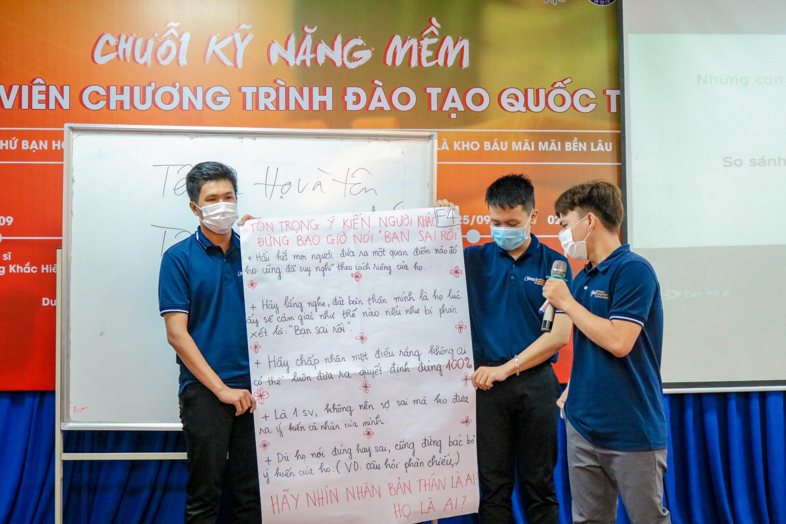 Từng có nhiều năm liền gắn liền với công tác Đoàn, gắn bó với giới trẻ và sinh viên, với những kinh nghiệm đó, cùng cách dẫn dắt vấn đề đầy dí dỏm và chuyên nghiệp mang phong cách riêng của mình, Thạc sĩ Dương Trọng Phúc đã có phần chia sẻ thú vị và sát với thực tế của giới trẻ hiện nay. Đến với buổi học, các bạn sinh viên chương trình liên kết quốc tế được lắng nghe 3 chủ đề: Kỹ năng lắng nghe; kỹ năng giao tiếp ứng xử và tạo lập mối quan hệ; kỹ năng giải quyết vấn đề.