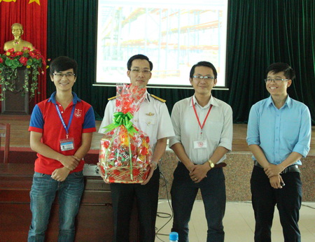 Thay mặt đoàn tham quan, ThS. Bùi Văn Hùng đã tặng quà và phát biểu cảm ơn sự tiếp đón nồng hậu của Công ty Cổ phần Tân Cảng Sóng Thần.