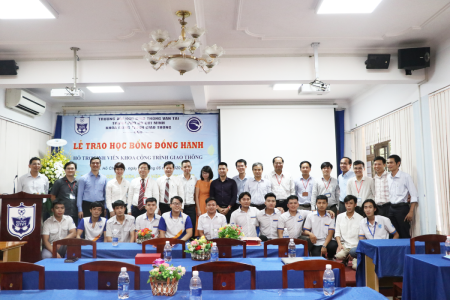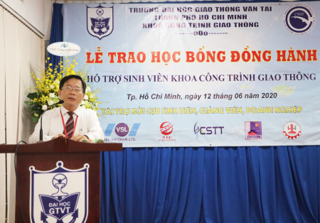Đến dự buổi trao học bổng có PGS.TS Nguyễn Bá Hoàng, Phó Hiệu trưởng phụ trách Nhà trường, trưởng các đơn vị và đại diện các doanh nghiệp tài trợ. Tại buổi trao học bổng, ông Lê Thanh Liêm, Công ty VSL Việt Nam đã trao 4 suất Học bổng cho sinh viên đầu vào 2019; ông Nguyễn Kim Sơn, Giám đốc Công ty cổ phần đầu tư thương mại SIC, TS Nguyễn Quốc Bảo, đại diện các giảng viên tài trợ học bổng và Trung tâm NCKH và phát triển công nghệ GTVT, ông Trần Hữu Bằng, Chuyên viên Sở Giao thông Vận tải Tp.HCM trao 25 suất học bổng, mỗi suất 1,000,000/sinh viên.