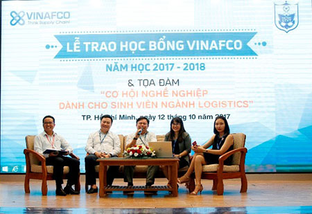 Trong khuôn khổ chương trình, sinh viên Trường được tham gia Tọa đàm cơ hội nghề nghiệp nhằm giải đáp thắc mắc liên quan đến cơ hội việc làm ngành logistics. Sinh viên bày tỏ sự quan tâm sâu sắc đến nhu cầu tuyển dụng, cũng như những tố chất & kỹ năng mà nhà tuyển dụng mong muốn tìm được ở ứng viên. Sinh viên còn đặt những câu hỏi chi tiết về đặc thù công việc Sales Logistics, Điều hành vận tải, Quản lý kho hàng…Từng câu hỏi của các em đã được đại diện các phòng ban của Vinafco trả lời chi tiết. Bà Lê Thị Kim Thư, Trưởng phòng nhân sự Công ty Cổ phần Vinafco đã nêu ra nhiều điểm nổi bật trong hoạt động nhân sự Vinafco như: Nhân viên được giao chỉ tiêu (KPI) gắn với chỉ tiêu (BSC) của Phòng/Công ty; xây dựng văn hóa doanh nghiệp, bộ năng lực chung gắn với hoạt động sản xuất kinh doanh; hệ thống lương kết nối với thị trường; chế độ phúc lợi đầy đủ và trên luật; xây dựng training matrix.