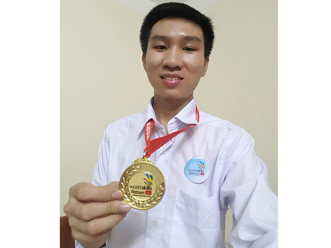 Lê Quí Nhất với huy chương vàng hội thi Tay nghề quốc gia