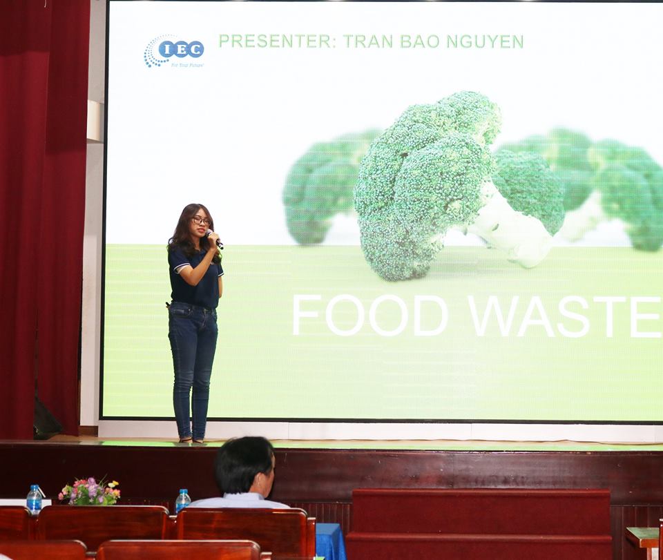 Sinh viên Trần Bảo Nguyên trình bày chủ đề "Food Waste"