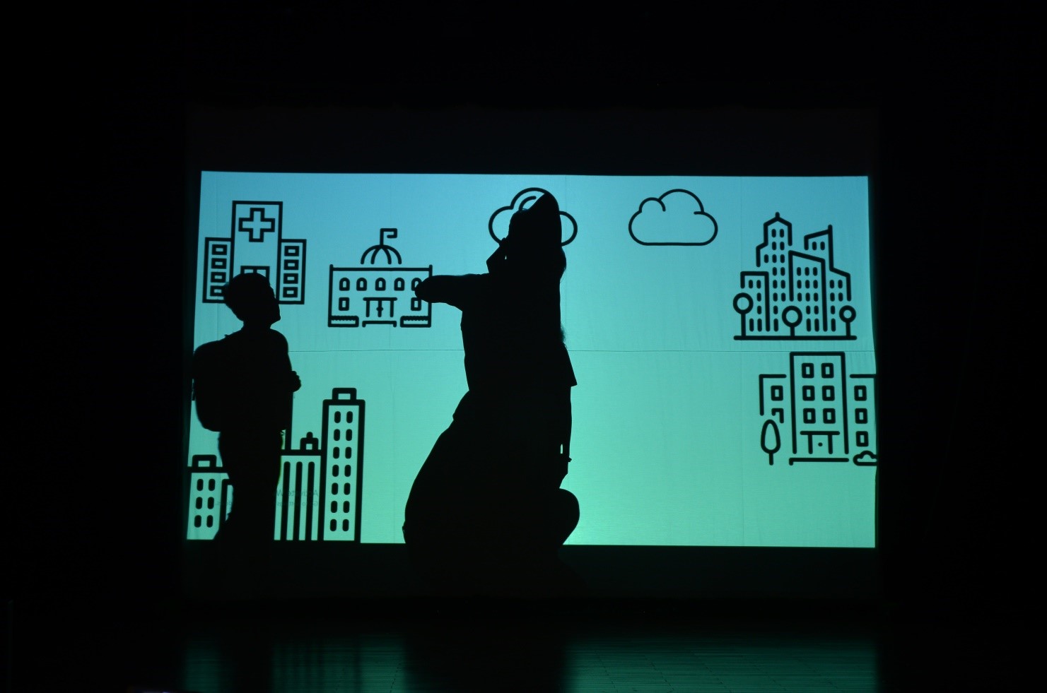 Các bạn sinh viên múa bóng thể hiện hình ảnh cậu học sinh lên thành phố Hồ Chí Minh học đại học và nhìn thấy tòa nhà Bitexco