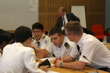 Sau 2 ngày làm việc và thảo luận nhóm sôi nổi, sinh viên Trường cùng 4 sinh viên khác đại diện nhóm thuyết trình về chủ đề “Sự chuyên nghiệp trong Hàng hải Toàn cầu” (Global Maritime Professional).