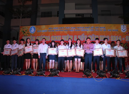 Đến dự buổi lễ có sự hiện diện của lãnh đạo nhà trường, trưởng/phó các đơn vị và đại diện Tiểu Đoàn trinh sát 47 (phường Tân Chánh Hiệp, quận 12), các đơn vị bạn và đông đảo sinh viên trường. "Sinh viên 5 tốt" là danh hiệu cao quý của sinh viên, trong năm học 2014 – 2015, Trường đã xét chọn được 41 sinh viên đạt danh hiệu sinh viên 5 tốt cấp trường và tổ chức tuyên dương khen thưởng trong chương trình. Năm học vừa qua, sinh viên Trường đạt nhiều thành tích đáng kể trong các hoạt động nghiên cứu khoa học như đạt giải thưởng các môn Olympic, cuộc thi tay nghề giỏi ngành giao thông vận tải, giải thưởng Eureka…Nhân dịp này, Trường cũng tổ chức tuyên dương các sinh viên đạt thành tích cao.