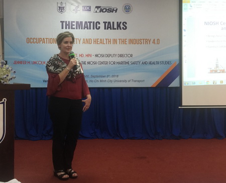 Đến dự buổi chuyên đề có đại diện Ban Giám hiệu, trưởng các phòng ban liên quan Trường ĐH Giao thông vận tải TP. HCM và bà Margaret Kitt – Phó viện trưởng NIOSH, bà Jennifer Lincoln - Phó Giám đốc Khoa học phụ trách các bang miền Tây của Hoa Kỳ, của Viện An toàn và Sức khỏe nghề nghiệp Quốc gia đồng thời là Giám đốc Trung tâm Nghiên cứu Sức khỏe và An toàn Hàng hải NIOSH; ông Nguyễn Ngọc Tuấn – Chuyên gia cao cấp ngành an toàn vệ sinh lao động, ông Nguyễn Ngọc Hải - Viện trưởng viện An toàn – vệ sinh lao động TP.HCM.