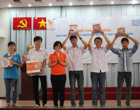 Sinh viên tham gia trả lời và nhận quà từ những câu hỏi của Ban Tổ chức