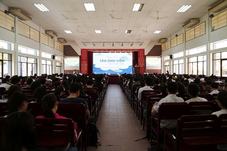 Có mặt tại Hội trường từ rất sớm, các bạn tân binh ai nấy đều hứng khởi chờ đợi từng tiết mục giới thiệu về chuyên ngành, bộ môn, tương lai phát triển từng ngành và về tổ chức Đoàn- Hội của chính khoa các bạn đang theo học.