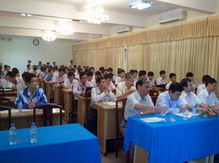 | Các thí sinh xem phòng thi trước khi vào làm thủ tục dự thi ngày 03/07/2012 |