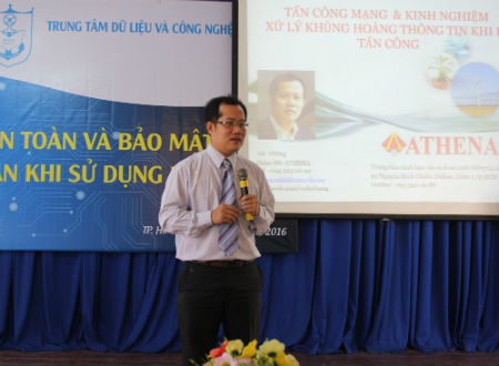 Báo cáo viên Võ Đỗ Thắng, Giám đốc Trung tâm đào tạo quản trị và an ninh mạng ATHENA và cộng sự khái quát về tình hình an ninh mạng trong thời gian qua, nguy cơ an ninh mạng, vấn đề về tấn công mạng và xử lý khủng hoảng thông tin khi bị tấn công, các vấn đề về bảo mật máy tính, bảo mật các thiết bị di động…Các đại biểu đã quan tâm và đặt những câu hỏi liên quan đến việc ứng dụng và bảo mật thông tin trong cuộc sông hàng ngày.