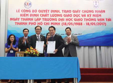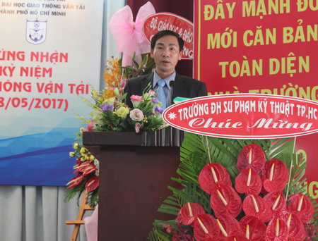 TS. Nguyễn Quốc Chính, Phó Giám đốc Trung tâm Kiểm định chất lượng giáo dục, Đại học Quốc gia Thành phố Hồ Chí Minh chúc mừng Trường Đại học GTVT TP. HCM đã đạt tiêu chuẩn chất lượng giáo dục đại học và cho rằng những nỗ lực của Nhà trường là sự động viên rất lớn đối với các trường đại học khác tại Việt Nam. TS. Nguyễn Quốc Chính cũng khẳng định, giấy chứng nhận này không phải là điểm đến mà chỉ là tấm vé thông hành hướng đến chất lượng.