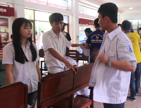 Sinh viên khóa trước giới thiệu quy trình làm thủ tục cho các bạn tân sinh viên