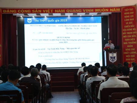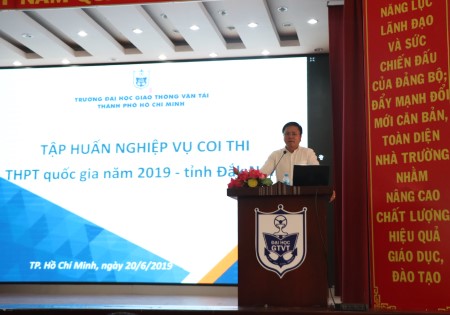 Theo quyết định giao nhiệm vụ của Bộ Giáo dục & Đào tạo về kỳ thi THPT Quốc gia năm 2019, Trường Đại học Giao thông vận tải TP.HCM phối hợp cùng Sở Giáo dục và Đào tạo tỉnh Đăk Nông thực hiện công tác coi thi, giám sát thi và là đơn vị chủ trì chấm thi trắc nghiệm tại 13 điểm thi của cụm thi số 41 - tỉnh Đăk Nông từ ngày 23/6 -27/6/2019 với số lượng cán bộ được điều động là 347 lượt.