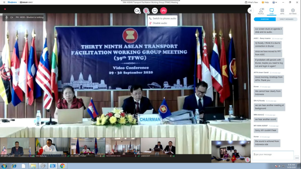 Sau phần phát biểu của Campuchia với tư cách là Chủ tịch TFWG năm 2020, cuộc họp thông qua nhiều nội dung, song tập trung xoay quanh việc triển khai của các nước, các tổ chức, hiệp hội trong việc thực hiện các hạng mục của Kế hoạch chiến lược phát triển GTVT ASEAN đã được thông qua tại Kuala Lumpur năm 2016.