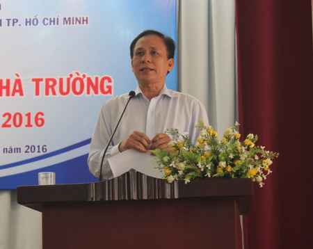PGS.TS Nguyễn Văn Thư thông báo tình hình hoạt động của Nhà trường đến sinh viên