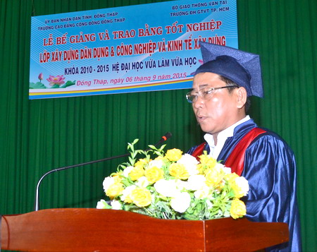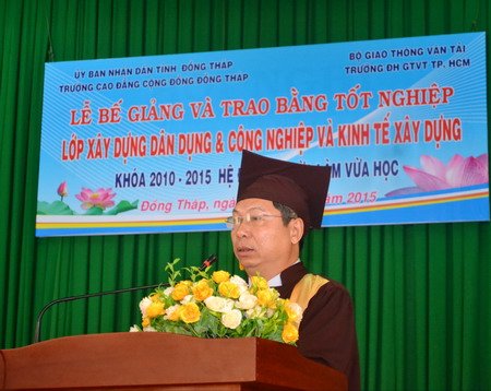Tham dự buổi lễ có sự hiện diện của PGS.TS Nguyễn Bá Hoàng, Phó Hiệu trưởng, ThS Nguyễn Đức Hiếu, Phó Trưởng phòng phụ trách Phòng Đào tạo VLVH, ThS. Phạm Phát, Hiệu trưởng trường CĐCĐ Đồng Tháp cùng các thầy cô giáo, đại diện các bậc phụ huynh và đặc biệt là 105 tân kỹ sư tốt nghiệp năm 2015 của trường.
