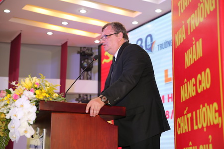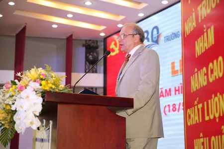 Ông Lê Ngọc Văn chúc mừng Nhà trường