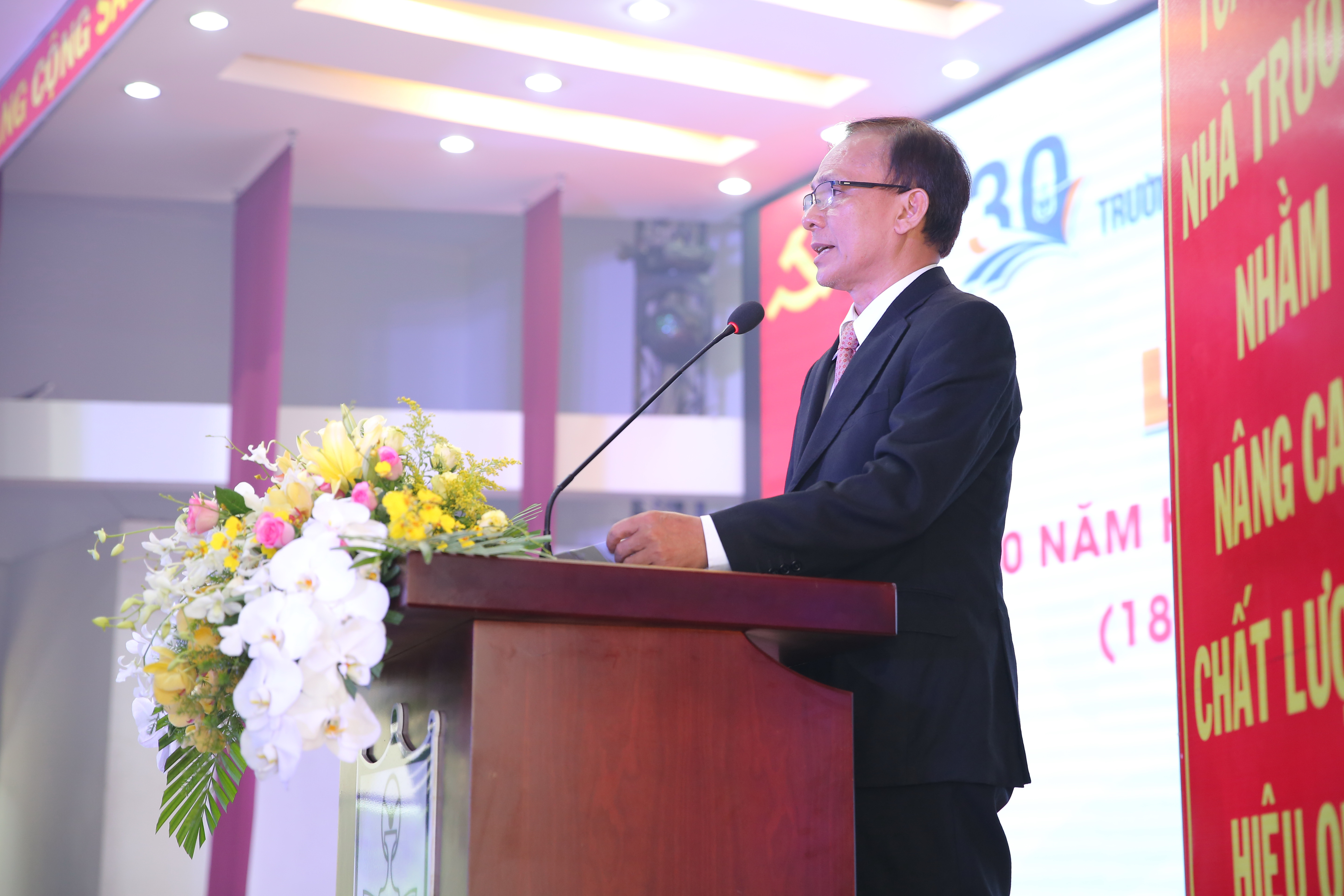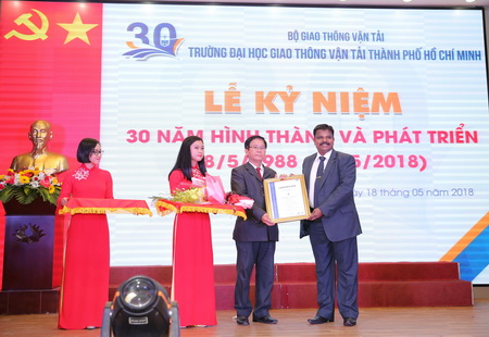 Trong không khí trang trọng của buổi lễ, PGS.TS.Nguyễn Văn Thư, Bí thư Đảng uỷ, Hiệu trưởng Nhà trường đã tự hào ôn lại truyền thống 30 năm đầy khó khăn nhưng rất đỗi vẻ vang của Nhà trường. Cách đây tròn 30 năm, ngày 18/05/1988, Bộ Giao thông vận tải và Bưu điện đã ra Quyết định số 1252/TCCB-LĐ thành lập Trung tâm Đào tạo, Bồi dưỡng Tại chức Giao thông vận tải TP. Hồ Chí Minh. Đây là cột mốc quan trọng trên chặng đường phát triển của Trường ĐH GTVT TP.HCM.