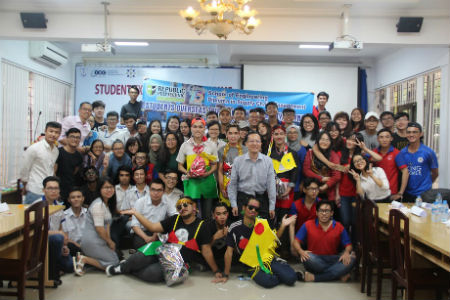 Sinh viên đầy khí thế trước khi lên đường thi đấu