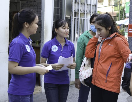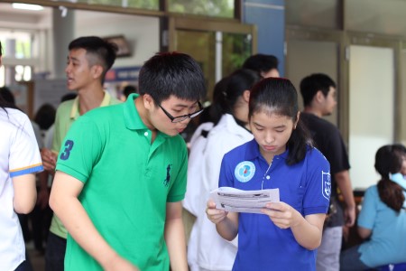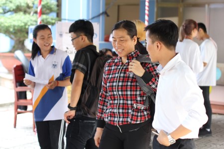 Tân sinh viên được các anh chị khóa trước tận tình hướng dẫn các thủ tục nhập học