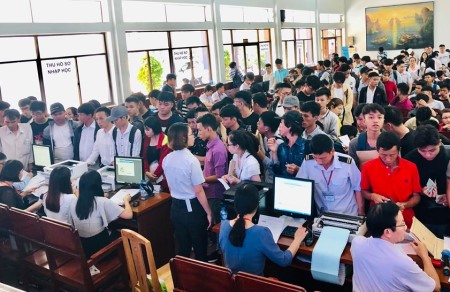 Tân sinh viên xếp hàng làm thủ tục nhập học