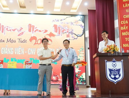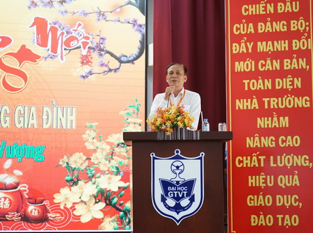 Buổi gặp mặt đã diễn ra trong không khí ấm áp, vui vẻ với nhiều lời chúc tốt đẹp cho một năm mới thành công. PGS.TS Nguyễn Văn Thư, Bí thư Đảng ủy, Hiệu trưởng nhà trường đã gửi lời chúc mừng năm mới đến toàn bộ cán bộ, giảng viên và công nhân viên Trường và nhấn mạnh những nhiệm vụ trọng tâm cần triển khai trong năm 2018, đây sẽ là năm nhà trường đối diện với nhiều nhiệm vụ mới, thách thức mới.