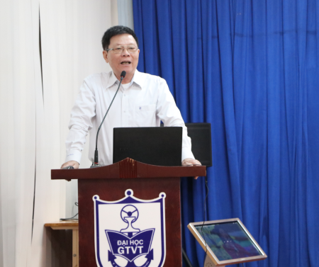 PGS.TS Trần Cảnh Vinh, nguyên Hiệu trưởng chúc cán bộ, giảng viên Trường đồng lòng, đoàn kết và phát triển