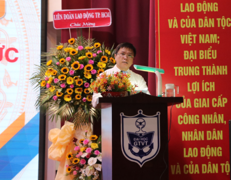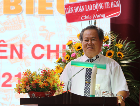Đồng chí Huỳnh Văn Sáu, Trưởng ban Cán sự giáo dục và đào tạo Liên đoàn Lao động TP.HCM phát biểu tại Hội nghị