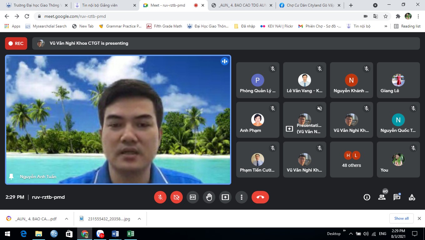 TS. Vũ Văn Nghi, Trưởng Khoa Công trình giao thông đã báo cáo tóm tắt tình hình xây dựng CTĐT và ma trận tích hợp giữa chuẩn đầu ra với các học phần, giới thiệu bản ma trận tích hợp khoa đã xây dựng và tiến độ xây dựng chuẩn đề cương chi tiết của ngành Kỹ thuật xây dựng công trình giao thông.