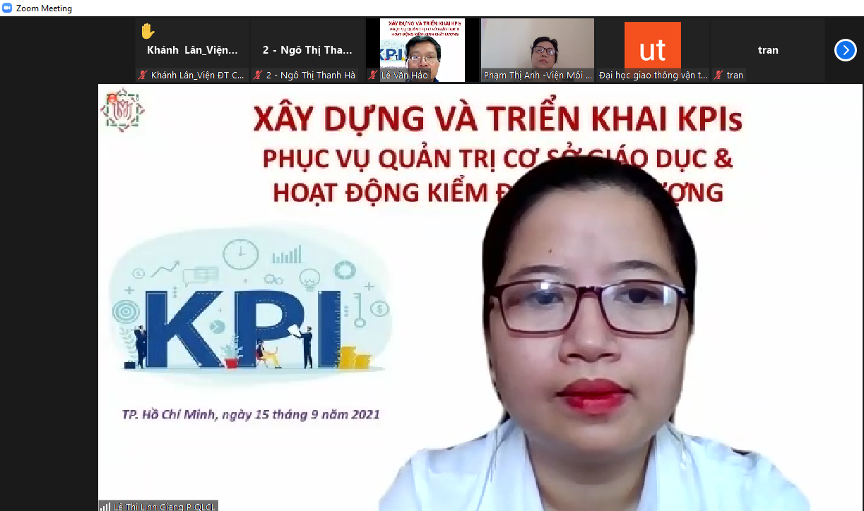TS. Lê Thị Linh Giang, đại diện Phòng QLCL trình bày kế hoạch xây dựng KPIs của Trường