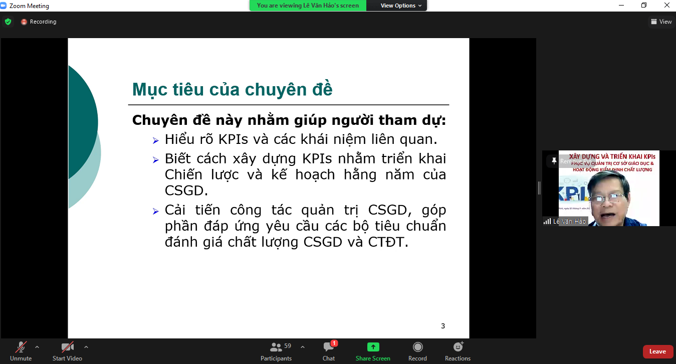 PGS.TS Lê Văn Hảo chia sẻ các kiến thức về KPIs