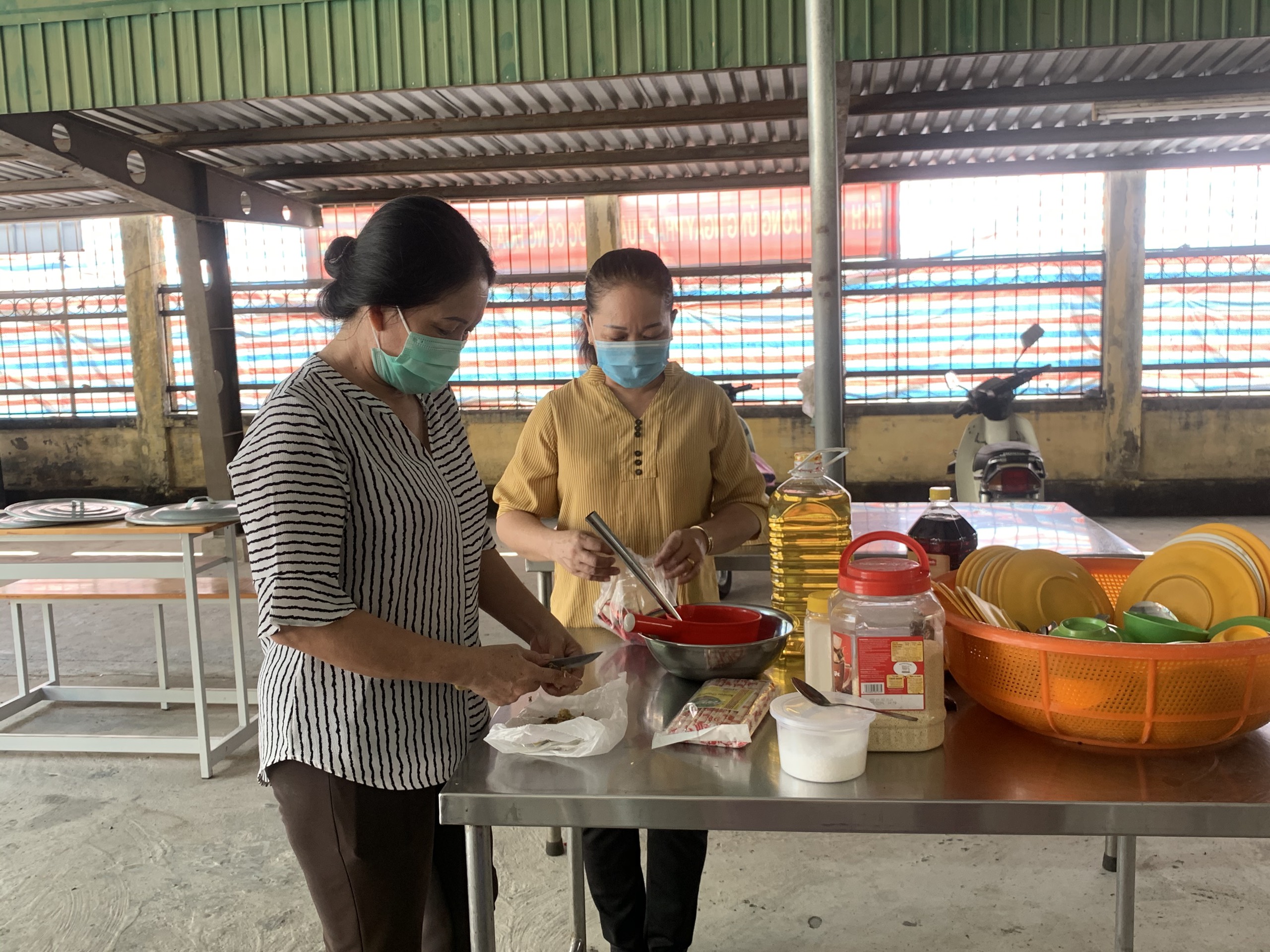 Bếp ăn được thành lập phục vụ cho các em sinh viên còn ở lại KTX