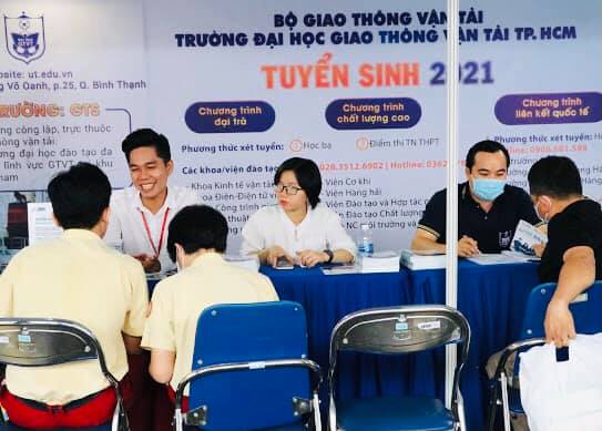 Vẫn như mọi năm, gian hàng tư vấn trường ĐH GTVT TP.HCM luôn thu hút rất nhiều quý thầy cô, phụ huynh và học sinh ghé tham quan và đặt nhiều câu hỏi quan tâm về trường. Cán bộ tư vấn tuyển sinh của Nhà trường liên tục trả lời tất cả thắc mắc của quý thầy cô, phụ huynh và học sinh THPT tham dự ngày hội liên quan đến thông tin các ngành đào tạo, chỉ tiêu, phương thức xét tuyển, điểm chuẩn các năm, học phí, thủ tục nộp hồ sơ xét tuyển vào trường, cơ hội nhận học bổng và cơ hội việc làm sau khi ra trường,....