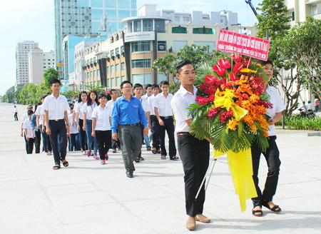 Đoàn dâng lên Bác lẵng hoa tươi thắm với lòng kính yêu vô hạn