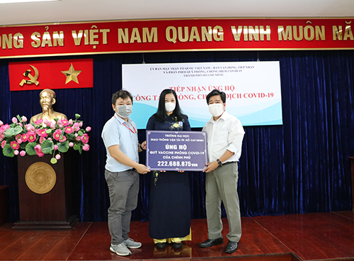 Trước đó, hưởng ứng lời kêu gọi của Thủ tướng Chính phủ, Ủy ban Trung ương Mặt trận Tổ quốc Việt Nam, ngày 07/6/2021, Hiệu trưởng Trường ĐH Giao thông vận tải TP.HCM đã nhanh chóng phát động, kêu gọi viên chức, người lao động và người học đóng góp ủng hộ “Quỹ vắc xin phòng Covid-19" của Chính phủ.