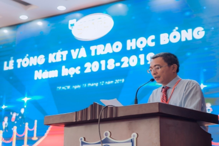 TS Nguyễn Khánh Lân, Phó viện trưởng phụ trách Viện đào tạo chất lượng cao đọc báo cáo tổng kết năm học 2018 – 2019