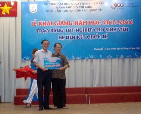 Với mục tiêu đào tạo gắn kết với doanh nghiệp, nhân dịp khai giảng năm học 2015-2016, Viện IEC cũng đã nhận được các suất học bổng có giá trị từ các đơn vị cơ quan, doanh nghiệp trong và ngoài ngành Giao thông vận tải. Đây cũng là dịp Viện trao phần thưởng khuyến khích học tập cho sinh viên đạt thành tích cao trong học kỳ II và III năm học 2014-2015.