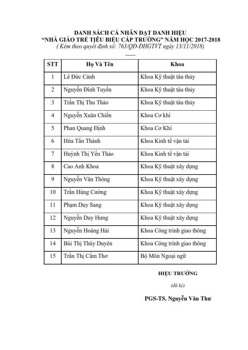 Tuyên dương các nhà giáo trẻ tiêu biểu (danh sách gồm 15 giảng viên)