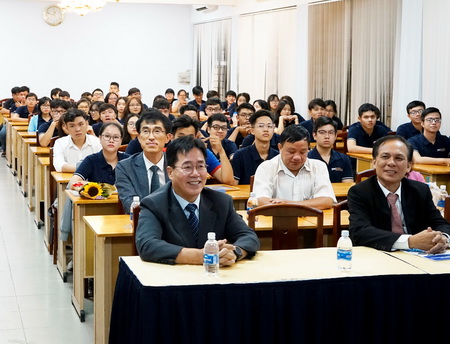 Mở đầu bài phát biểu, PGS.TS Nguyễn Văn Thư đã chúc mừng và chào đón 87 em Tân sinh viên khóa 2018 chính thức bước vào học Chương trình đào tạo nước ngoài của trường Đại học Giao thông vận tải TP. Hồ Chí Minh. PGS.TS Nguyễn Văn Thư nhấn mạnh “Với xu thế hội nhập quốc tế, giáo đục đại học đóng vai trò rất quan trọng trọng việc cung cấp nguồn nhân lực chất lượng cho thị trường lao động. Trong thời đại ngày này, kiến thức chuyên môn dường như là chưa đủ; sinh viên tốt nghiệp cần thành thạo các kỹ năng mềm như khả năng giao tiếp, khả năng làm việc nhóm, tư duy độc lập, và rất quan trọng nữa là Tiếng Anh. Chương trình đào tạo nước ngoài tại ĐH giao thông vận tải TP Hồ Chí Minh được mở ra và vận hành với sứ mệnh cung cấp cho sinh viên những kỹ năng quan trọng ấy. Trong 4 năm tới đây, cùng với sự chung sức của đội ngũ giảng viên hai nước và sự nỗ lực không ngừng của bản thân trong một môi trường sống và học tập thân thiện, các em sẽ bước ra khỏi mái trường đại học không chỉ với những kỹ năng đó mà còn với một tâm thế rộng mở, sẵn sàng cho mọi thử thách” .