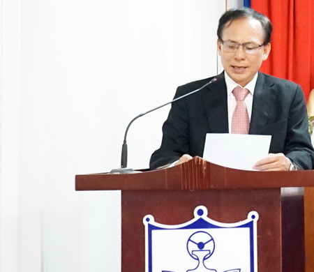 TS Jung. Hong Sub - Hiệu trưởng Trường ĐH Tongmyong phát biểu chúc mừng các em sinh viên