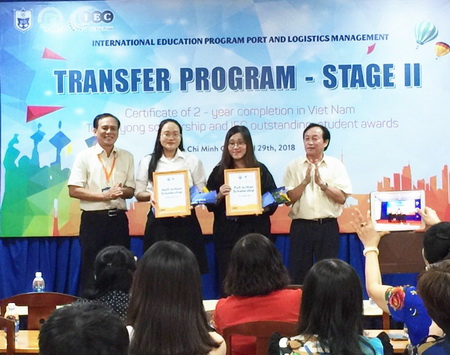 Ngành quản lý Cảng và Logistics do nhà trường hợp tác cùng Trường ĐH Tongmyong Hàn Quốc đào tạo được đánh giá là chương trình mũi nhọn trong việc đào tạo và cung cấp nhân lực Logistics chất lượng cho Việt Nam, khu vực và quốc tế. Đến nay các em đã hoàn thành giai đoạn I và chuyển tiếp giai đoạn II tại Hàn Quốc. Tại buổi lễ, nhà trường đã trao chứng nhận hoàn thành 2 năm và trao visa cho các em tiếp tục học tập giai đoạn II.